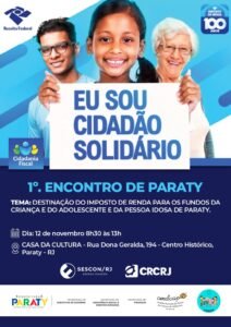 | 12 | 1º ENCONTRO DE PARATY – Eu sou cidadão solidário! | CASA DA CULTURA Rua Dona Geralda, 194 – Centro Histórico | 08:30h às 13:00h | Informações e inscrições! |
